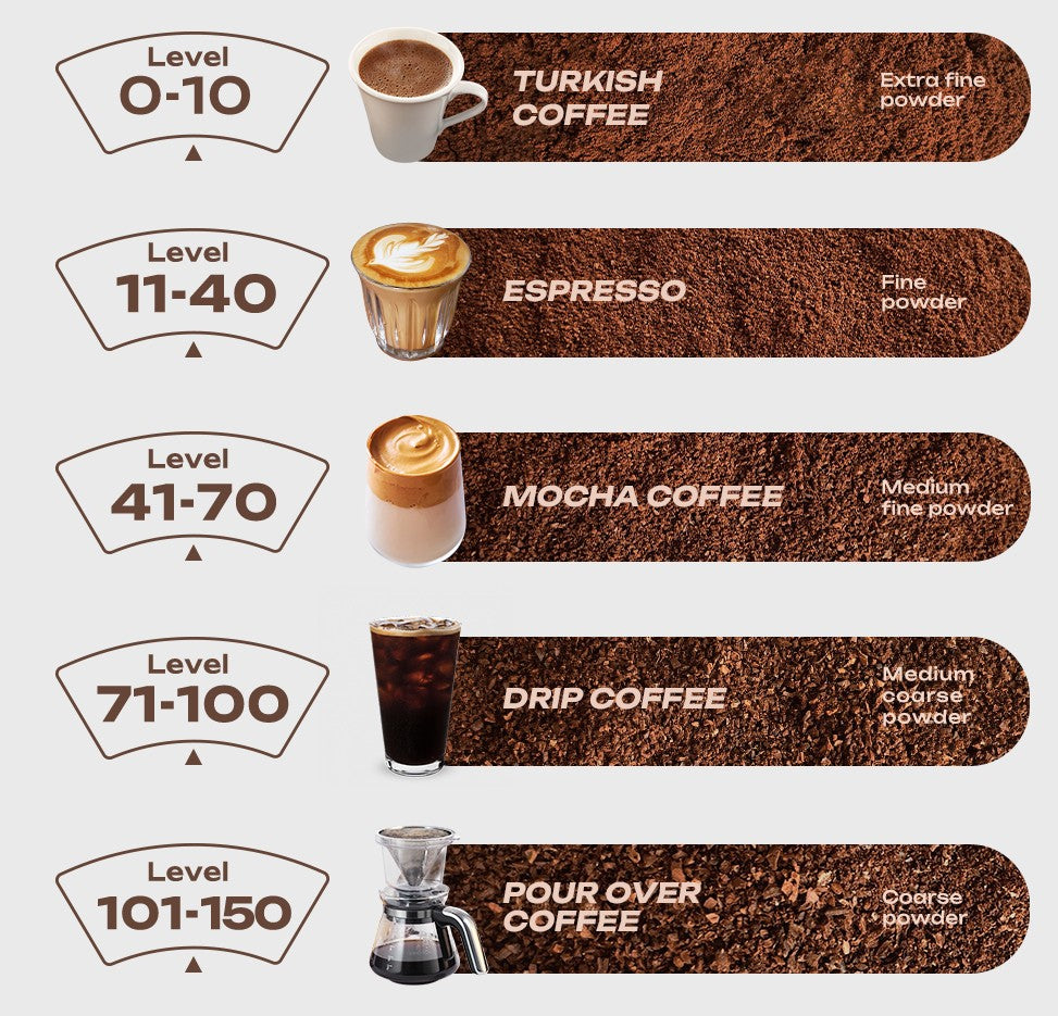 Offers a wide and precise range for any brew method, from Turkish to pour-over. With 150 settings and variable speed control (600–1600 RPM), you can fine-tune every aspect of your grind for the perfect extraction.