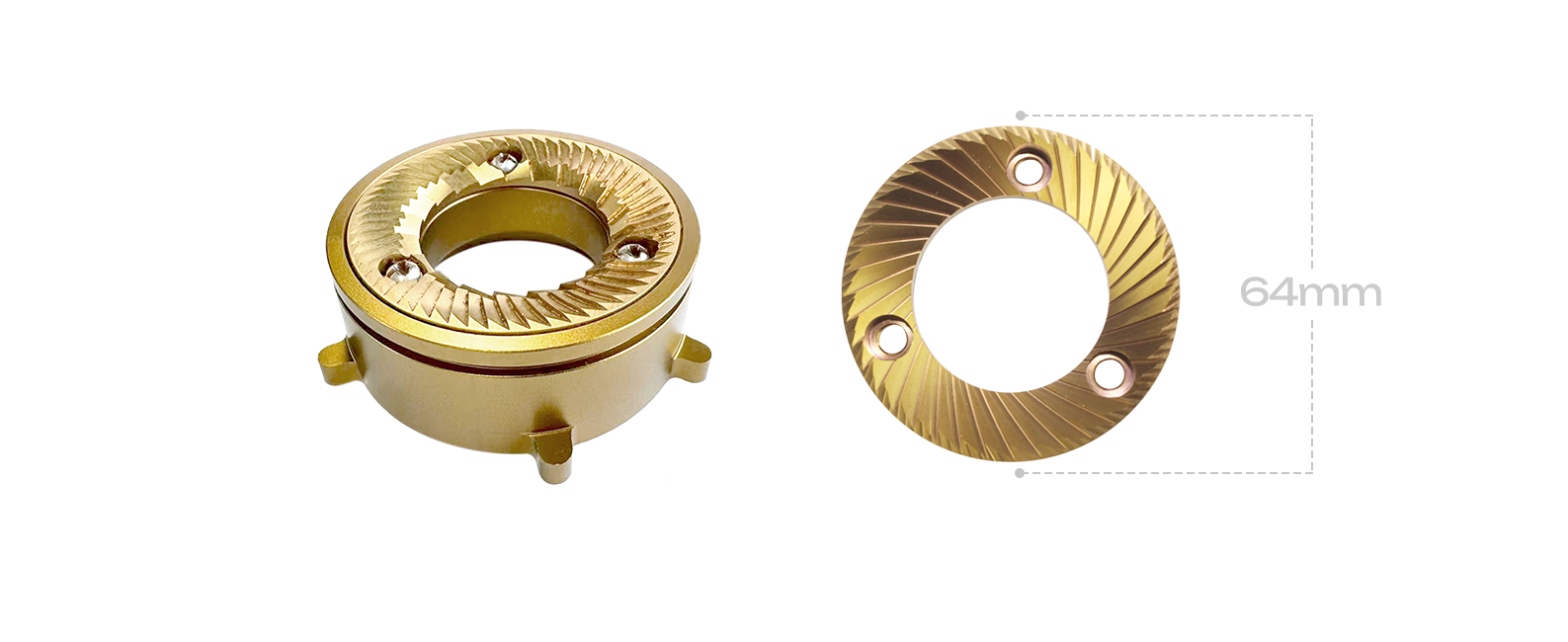 Precisely crafted to slice, not crush, coffee beans for exceptional grind uniformity. The specialized titanium coating adds a protective layer, dramatically increasing hardness and extending the life of the burrs for long-lasting performance.
