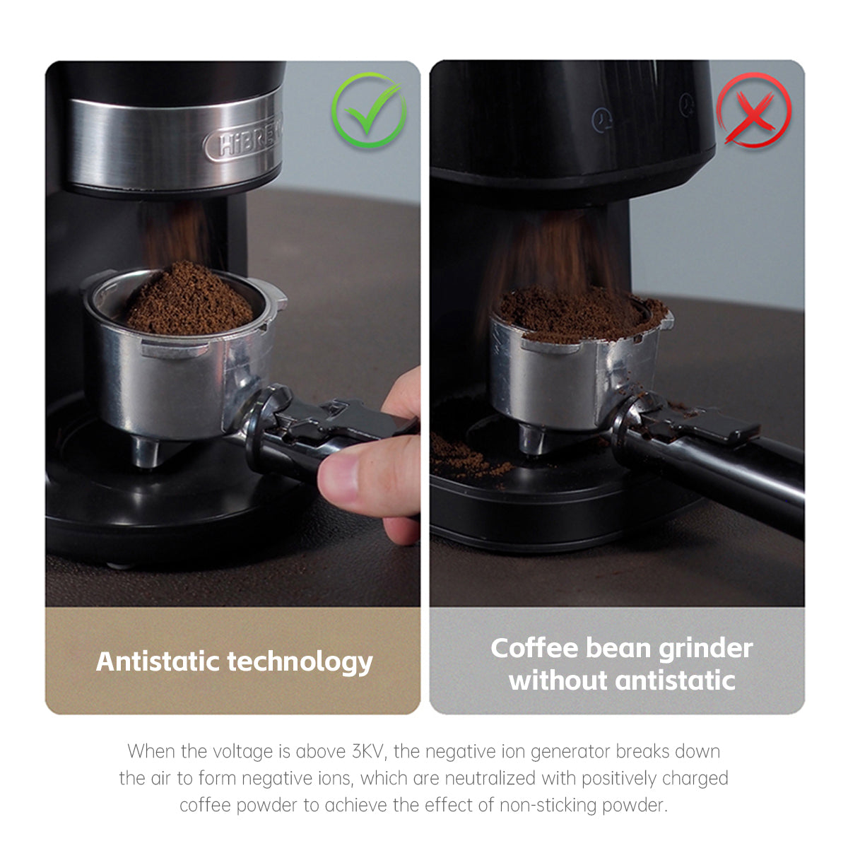40mm conical burr, 31-gear scale, anti-static function & memory modes. HiBREW G3 grinder delivers uniform grinding and easy cleanup for barista-quality coffee.