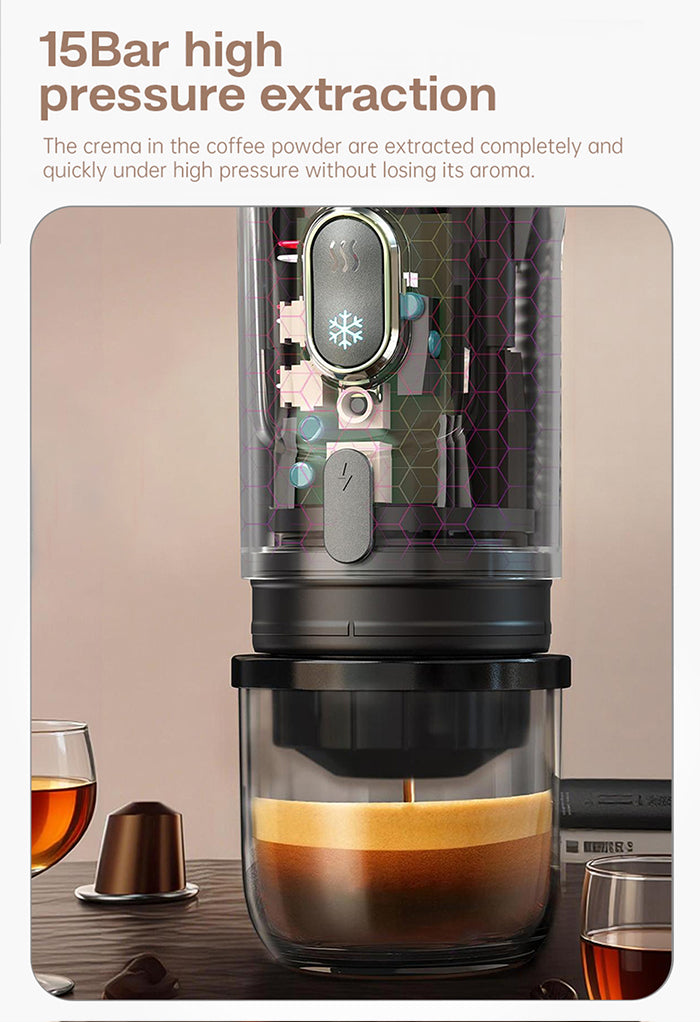 The cream in the coffee powder are extracted completely and quickly under high pressure without losing its aroma.