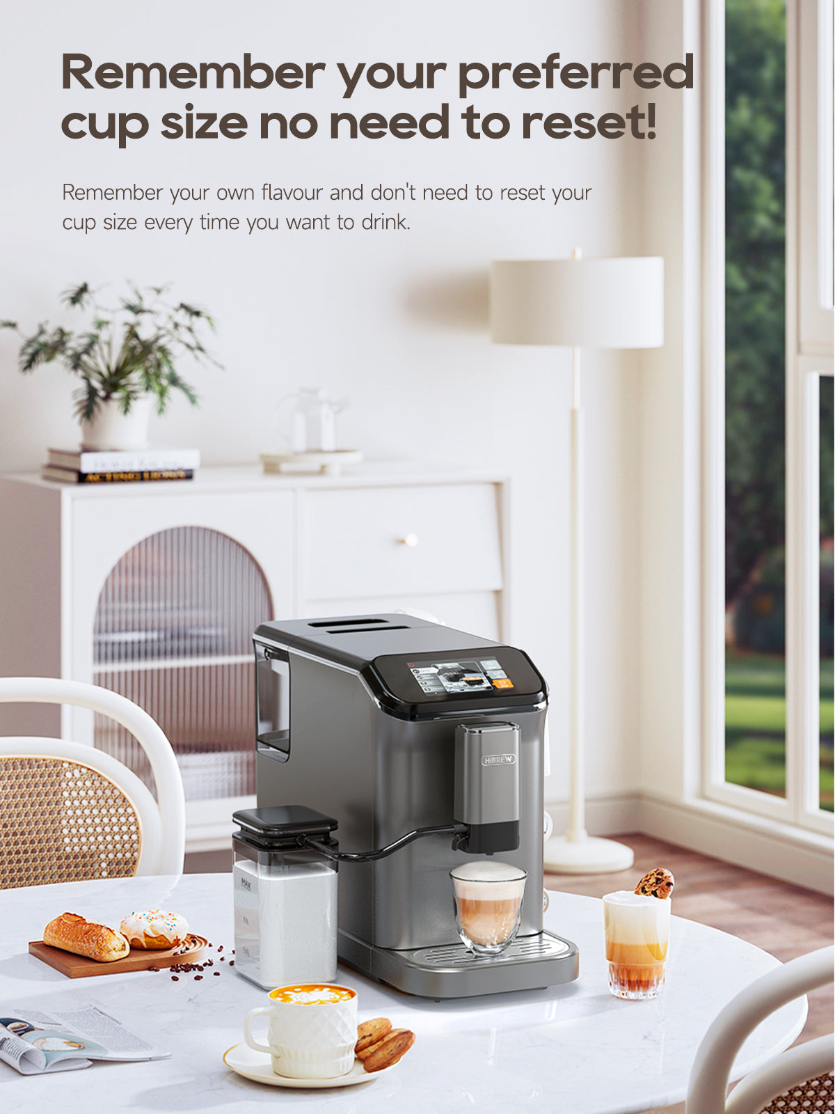 The HiBREW H16 remembers your preferred cup size, so you can enjoy a consistent coffee experience with just one tap.
