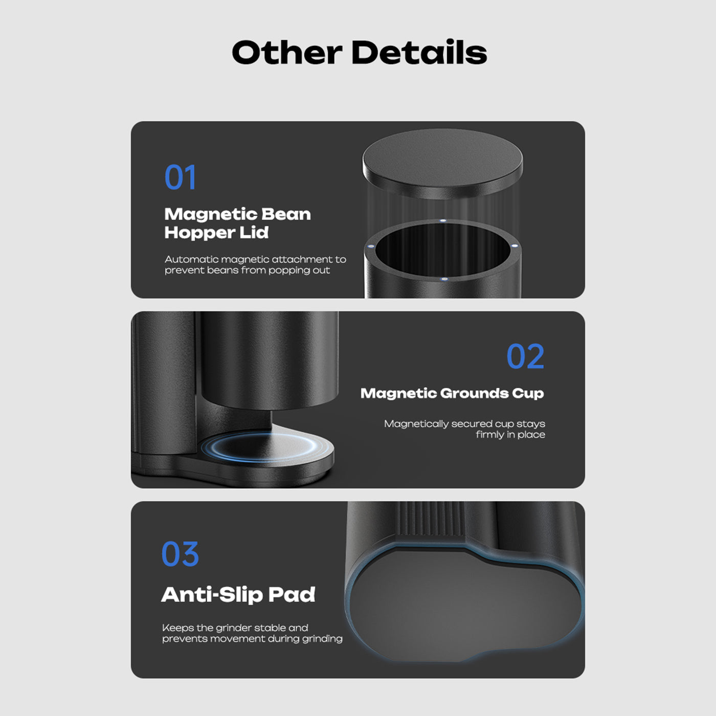 HiBREW G5mini Wireless Portable Coffee Grinder | 38mm Stainless Steel Conical Burr | 100-Step Stepless Adjustment | Type-C Fast Charging | Home/Outdoor/Office Use