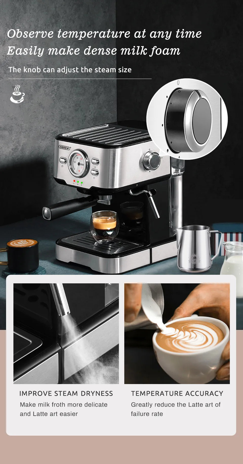 20bar high pressure extraction of more fragrant cream, pressure fully releases coffee essence